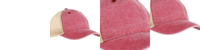 - Contrasting pigment-dyed button and visor on two-toned caps