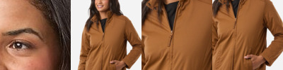 - Exposed molded zipper with Eddie Bauer logo pulls
