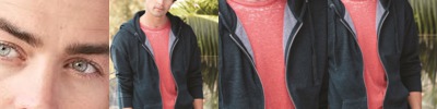 8.3 oz., 80% ringspun cotton, 20% polyester midweight fabric; Soft cotton faced fabric creates ideal printing surface; Twin needle stitching detailing; Contrast raglan sleeves; Double fabric hood; Contrast flat lace drawcords; Small hidden opening for earphone cord feed inside pouch pouch pocket; Hidden earphone loops inside collar; Ribbed cuff and hem; Simple tear-away label makes it perfect for rebranding;