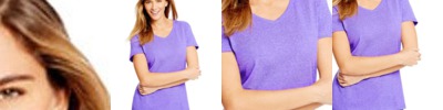 Arftul V-neck t-shirt in a lightweight blend of poly/cotton/rayon for a flattering fit.