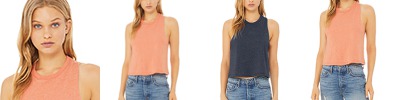 52% combed and ring spun cotton, 48% polyester; 32 singles; Raw armholes; Racerback; Cropped; Sideseamed; Tear away label; BELLA+CANVAS uses sustainable manufacturing processes with Blue Sign certified dyes, efficient dye houses that adhere to the state of California’s EPA regulations around waste water treatment and usage, and cutting facilities in Los Angeles that run on partial solar power with comprehensive recycling programs for paper waste and fabric scraps.;