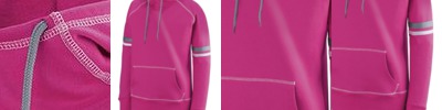 - Contrast color drawcord in scuba shaped hood on sizes M-2XL only