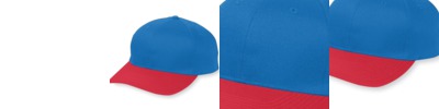 - Contrast color upper front panel with two-color rib knit trim