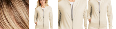 Casual and soft, this cotton-rich bomber gives a classic silhouette an on-trend twist. 6.5-ounce, 59/41 combed ring spun cotton/poly French terry Tag-free label Front pockets 2x2 rib knit collar, cuffs and hem