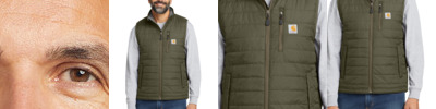 When it's just cold enough to call for core warmth, this insulated vest has you covered as a lightweight, water-repellent layer. 1.75-ounce, 100% nylon Cordura ® shell Rain Defender ® durable water repellent Wind Fighter ® technology tames wind Nylon lining quilted to 100-gram, 100% polyester insulation for warmth Reverse coil center front zipper Zip-through collar Left chest map pocket with reverse coil zipper Two hand pockets with hidden snap closures Two interior pockets: one zippered, one hook and loop closure Drawcord adjustable drop tail hem Carhartt-strong, triple-stitched main seams Carhartt label sewn on chest pocket Relaxed fit