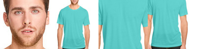 4.5 oz/yd2 / 160 gsm, 100% polyester jersey; Moisture-wicking and antimicrobial properties; ChromaSoft™ technology combines the colorfastness of cationic dyes with soft cotton-feel performance; Tear away label; Active fit; Easy care;