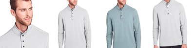 6.6 oz./yd2 / 225 gsm, 100% polyester; Snag protection plus jersey with moisture-wicking and antimicrobial performance; Matching flat-knit collar; Three-button placket; Double pen pocket on left sleeve; Mic clips at shoulders and lower placket; Spandex enhanced rib knit cuffs; Side vents; 1 1/4" drop-tail hem for everyday activity and movement; Carbon neutral style in partnership with Green Story third party verified carbon offset program. For more information click on carbon neutral link above MSRP. ;