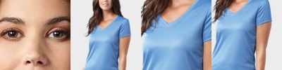 3.5 oz., 100% combed and ring-spun liquid cotton; 40 singles; Optimal stretch and recovery; Fashion fit; Side seams; U-neck; Scalloped hem; Loose fit; Tear-away label; Made in a W.R.A.P. certified factory;