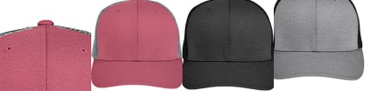 Body: 4 oz/yd2 / 130 gsm, 100% polyester sonic heather interlock; Trim: 5.1 oz/yd2 / 180 gsm, 100% polyester mesh side and back panels; Moisture-wicking; 6-panel, structured, mid-profile; Heavy buckram in front panels; Sewn eyelets; Adjustable snap-back closure;