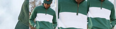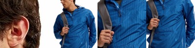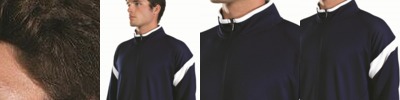 - Spandex blend ribbed-knit inner collar, cuffs and waistband