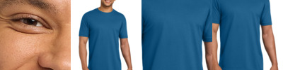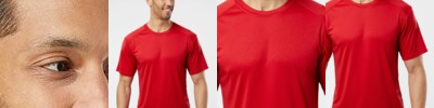 4.3-ounce, 60/40 combed ring spun cotton/poly, 32 singles CVC blend 1x1 rib knit neck Shoulder to shoulder taping Tear-away label Side seamed Fitted