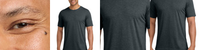 4.3-ounce, 50/25/25 poly/combed ring spun cotton/rayon, 32 singles 1x1 rib knit neck Shoulder to shoulder taping Tear-away label Side seamed Please note: This product is transitioning from satin labels to tear-away labels. Your order may contain a combination of both labels.