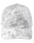 100% polyester; 6-panel, structured, mid-profile; Matching plastic snapback closure ; Permacurv® visor, Silver undervisor, 8-row stitching on visor; Trucker cap with officially licensed Kryptek® pattern;