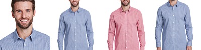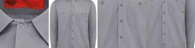 3.4 oz., 100% cotton yard dyed poplin; semi-fitted styling; gingham microcheck pattern; soft-collar styling; curved hemline; long-sleeve with two-button cuff; sleeve guard; Oeko-Tex® Standard 100 certified; WRAP certified;