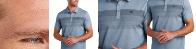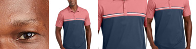 Tap into an unprecedented look with this wrinkle-resistant, quick-drying polo that features 4-way stretch and a large-scale chest stripe overlaid with texture. 4.4-ounce, 58/42 cotton/polyester Easy wash and wear Self-fabric collar Three-button placket with dyed-to-match buttons Embroidered TM logo on left chest Open hem sleeves Side vents