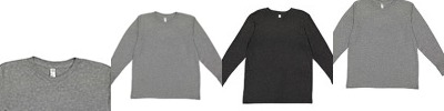 - Ash 99/1, Light Steel 90/10, Charcoal Heather & Oxford Gray 60/40 cotton/poly