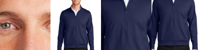 Inspired by classic double knit sets, this moisture-wicking jacket shows that you are part of the team. 100% recycled polyester double knit Tag-free label Self-fabric locker loop Coil zipper Side slash pockets Colorblock self-fabric detail on sleeves