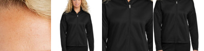 Go out to the game in this moisture-wicking hooded jacket. 3.5-ounce, 90/10 poly/spandex 100% poly tricot mesh insert Snag-resistant Tag-free label Attached hood Contrast tonal mesh panels at shoulder and under arms Front pouch pockets Adjustable fit at hem with side toggles