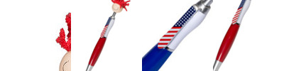 - Retractable curvy barrel ballpoint pen with patriotic-themed American flag stock art grip