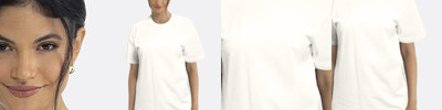 4.3-ounce, 60/40 combed ring spun cotton/poly, 32 singles CVC blend 1x1 rib knit crewneck collar Shoulder to shoulder taping Tear-away label Side seamed Classic fit