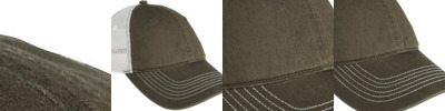 - Fabric: 100% cotton twill front panels; 100% polyester mesh mid and back panels