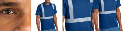 Stay visible in this breathable, moisture-wicking mesh tee. 4.1-ounce, 100% polyester birdseye mesh 1x1 rib knit neck Back neck tape Segmented, durable, reflective 2-inch tape provides 360-degree visibility on body and easy movement Left chest pocket Non-ANSI