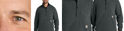 From jobsite to backyard barbeque, Carhartt Textured Fleece outerwear delivers easy-wearing warmth and everyday versatility. 7.3-ounce, 100% polyester Zip-through collar Two lower front zippered pockets Carhartt label sewn on left pocket Elastic binding cuffs Adjustable drop tail hem Relaxed fit