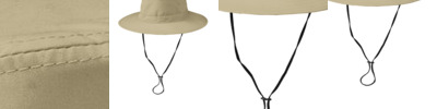 Excellent protection from the sun in a sporty design featuring a drawcord with cord locks and brass eyelets. Two side snaps allow you to wear brim up or down.