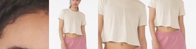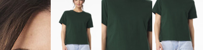 Flowy fit Tailored sleeve Side seamed Modest crop Tear-away label 3.7-ounce, 65/35 polyester/viscose, 32 singles