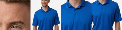 5 oz/yd², 60/40 cotton/recycled polyester pique Moisture-wicking performance UPF 40+ protection Active fit V-neck placket with matching knit collar Side vents Tear away label
