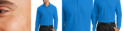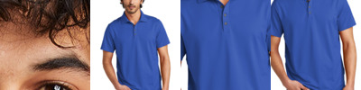 Tough enough to conquer moisture, snags and color bleed, this smooth polo also features a subtle, allover embossed geometric pattern. 4.7-ounce, 100% polyester jersey with PosiCharge technology and embossed pattern Self-fabric collar Tag-free label 3-button placket with dyed-to-match rubber buttons Set-in, open hem sleeves