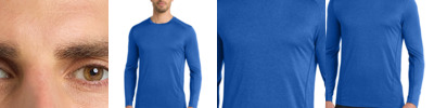Our color-locking tee has a soft hand, wicks moisture and is energized with an allover heather pattern. 4.1-ounce, 100% polyester jersey with PosiCharge technology Removable tag for comfort and relabeling Set-in sleeves