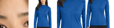 STAY-COOL WICKING LAYERABLE WARMTH STRETCH FLATLOCK SEAMS FOR COMFORT REFLECTIVE DETAILS 6.7-ounce, 91/9 poly/spandex jersey with stay-cool wicking technology Lightly brushed interior Reflective OGIO heat transfer label for tag-free comfort Zip-through cadet collar with molded cord pull Reflective O heat transfer at center back Raglan sleeves with shaped cuffs Reflective stacked O heat transfers on sleeves Front pockets Drop tail hem Reflective O heat transfer at front left hem