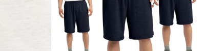 Our lightweight, unlined short with pockets wicks moisture and locks in colors. 3.8-ounce, 100% polyester interlock with PosiCharge technology Removable tag for comfort and relabeling Elastic waistband Continuous loop drawcord Side pockets 9-inch inseam