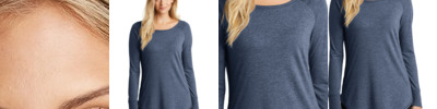 Long sleeve tunic version of our lightweight and soft crew. 4.5-ounce (153 GSM) 50/25/25 polyester/combed ring spun cotton/rayon, 32 singles Tear-away label Raw edge detail at armholes Coverstitch details 1x1 Rib knit neck Rib knit elongated cuffs Longer tunic length Curved hem Tri-Blend fabric infuses each garment with unique character. Please allow for slight color variations. Due to the heat sensitivity of tri-blend fabrics, special care must be taken throughout the printing process. Consult your decorator or ink supplier for best printing practices.