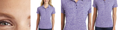Our color-locking polo has a soft hand, wicks moisture and is energized with an allover heather pattern. 4.1-ounce, 100% polyester jersey with PosiCharge technology Removable tag for comfort and relabeling Self-fabric collar Taped neck 4-button placket with dyed-to-match buttons Princess seams Set-in, open hem sleeves Curved drop tail hem