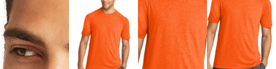 This triblend tee is perfectly soft and comfortable. 4.5-ounce (153 GSM) 50/25/25 polyester/combed ring spun cotton/rayon, 32 singles 1X1 rib knit neck Shoulder to shoulder taping Tear-away tag Tri-Blend fabric infuses each garment with unique character. Please allow for slight color variations. Due to the heat sensitivity of tri-blend fabrics, special care must be taken throughout the printing process. Consult your decorator or ink supplier for best printing practices.