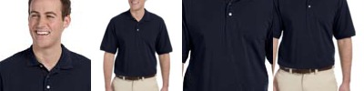 6.3 oz./yd2 / 215 gsm, 100% combed cotton pique with EZ Cool wicking technology; no-pill, no-fade, no-shrink, no-curl collar, no-wrinkle performance; Active fit; Three-button placket;