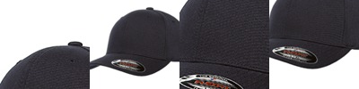 6-panel, structured, mid-profile; Eight-row stitching on bill; Hard buckram backed front panels; Polyester/spandex mesh on side and back; The original Flexfit® sweatband retains shape; Black underbill ; Ermacurv® visor;