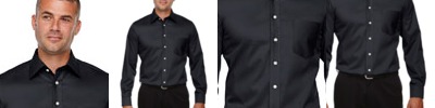 3.4 oz., 55% cotton, 45% polyester; Fine yarn count shirting; True Non-iron performance straight from the dryer; stain release finish; Active Fit; Patented pucker-free taped seams; Fused collar, cuffs, and placket; Split back seam with bias cut back yoke; Straight collar with built-in collar stays; adjustable Comfort Collar for up to an inch of stretch at neck; left-chest pocket; pearlized buttons;