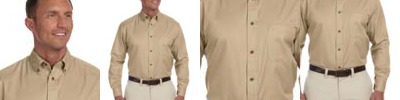 3.4 oz., 55% cotton, 45% polyester; Fine yarn count shirting; True Non-iron performance straight from the dryer; stain release finish; Active Fit; Patented pucker-free taped seams; Fused collar, cuffs, and placket; Split back seam with bias cut back yoke; straight collar; pearlized buttons; front and back princess seams for a flattering feminine fit; bust darts for a flattering feminine fit;