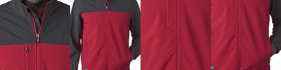 90% polyester,10% spandex face bonded with 100% polyester microfleece interior; Heathers: 100% polyester; Wind and water-resistant; Zippered chest and hand pockets; Adjustable cuffs; Auto-lock zipper with easy-grab zipper pull; Media port; Interior Cell Phone Pocket w/ Hook & Loop Closure 8"L x 6"W;