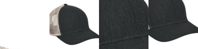 100% cotton; Green camo is 65% polyester / 35% cotton; 6-panel, Low-profile; Four-row stitching on visor; 3 1/8" crown; Unstructured; Matching undervisor; Antique brass buckle closure;