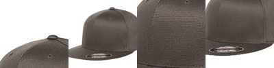 74% polyester, 26% cotton; Style is transitioning from 65% polyester/35% cotton; Mixed fabric inventory may occur; 5-panel, structured, high-profile; Eight-row stitching on flat visor; 4" crown; Hard buckram backed front panels; Matching undervisor; Plastic adjustable closure;
