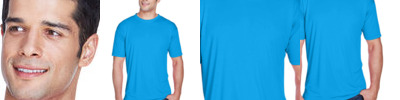 4 oz., 100% micro-polyester; Moisture-wicking; UPF 30+ protection; Athletic fit; Neck tape; 1/4" topstitching; Transitioning from heat-seal label to tear away label. Inventory may be mixed;