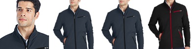 94% polyester / 6% spandex softshell fabric ; 3-layer fabric with X T.L laminate; Micro-brushed tricot chin and inner trim accents; Reverse coil center front zipper; Zippered handwarmer pockets; Zippered chest pocket; Asymmetrical seam accents; Modern fit;
