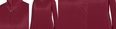 100% polyester wicking knit with true hue technology; True hue technology prevents dye migration; Wicks moisture; Tagless label; Quarter zip pullover style;