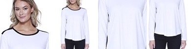 84% polyester/16% spandex knit ; Odor resistant ; Wicks moisture away from the body ; Ultra tight Ladies' fit ; Pad print label ; Self-fabric V-neck collar ; Raglan sleeves ;