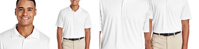 Our #1 performance tee fabric offered in a color-locking, moisture-wicking polo to expand your uniforming options. 3.8-ounce, 100% polyester interlock with PosiCharge technology Flat knit collar Removable tag for comfort and relabeling Taped neck 3-button placket with dyed-to-match buttons Set-in, open hem sleeves Due to the nature of 100% polyester performance fabrics, special care must be taken throughout the printing process. **