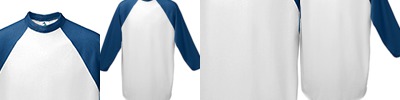 50% cotton, 50% polyester jersey knit; New fit for greater comfort; Contrast color 1x1 rib-knit collar; Tear away label; Contrast color raglan sleeves; Double-needle hemmed sleeves; Serged fishtail bottom;